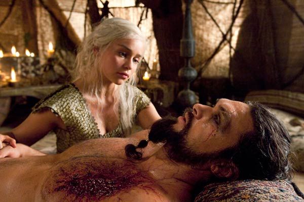 Otra de las muertes de la primera temporadas que nos cayó como un jarro de agua fría fue la de Khal Drogo. Cuando parecía que la pareja formada por el Khal y Daenerys lo tenía todo de su parte para comerse el mundo, el personaje de Jason Momoa moría por una herida infectada... Y bueno, magia negra también.