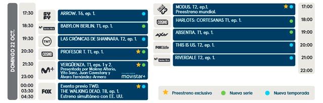 Como cada año, las proyecciones -una selección de las principales canales que participan en el evento- son la espina dorsal del Spoiler Fest. Las tardes del viernes, sábado y domingo podrás ver en pantalla grande desde el preestreno de Vergüenza, una de las series de producción original de Movistar+, hasta el estreno de la octava temporada de The Walking Dead en simultáneo con Estados Unidos.