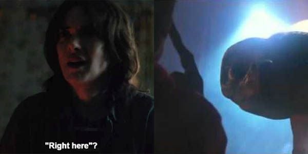 Otra similitud entre Once y el adorable extraterrestre: ambos alucinan con la tele. Es un elemento extraño en sus vidas y su manera de observarla es muy similar. Tanto, que las escenas son calcadas.