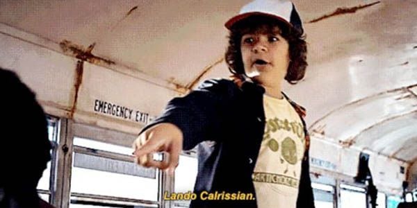 Cada referencia tiene a un potagonista, y Star Wars es el territorio de Mike y Lucas. El primero posee una figura de Yoda y hace numerosas referencias a la saga a lo largo de la primera temporada, como atribuirle a Once poderes "de Jedi"; el segundo, para ser justos, tiene la frase galáctica más graciosa: cuando piensa que la niña está mintiendo a la pandilla, exclama "Lando" en alusión a Lando Calrissian, el personaje que traiciona a Han Solo en El Imperio Coontrataca.
