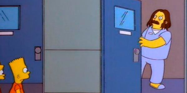 Cuando Flanders se interna voluntariamente en un psiquiátrico, Los Simpson van a visitarle y se encuentran con un paciente algo extraño, Pues bien, es una broma interna del equipo. Se trata de John Swartzwelder, guionista de la serie y autor de capítulos como 'El enemigo de Homer' o 'Solo se muda dos veces'. Entre los guionistas es conocido por ser notablemente reservado, así que incluyeron esta broma en el episodio. No es la úncia referencia. Cuando Flanders sale del centro, hay gente con carteles donde se puede leer "Liberad a John Swartzwelder".