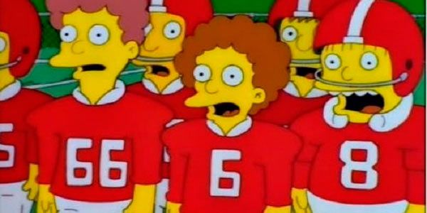 Quizás esta broma oculta sí haya sido cazada por algún espectador y es que está completamente a la vista. En la famosa escena en la que Homer excluye a casi todos los miembros del equipo de fútbol americano que entrena, aparece Rod con el número 66 y Todd con el 6. Al juntarlos forman el número de la Bestia. Además, es posible que esto te recuerde al episodio de la Casa árbol del terror donde Flanders es Satán.