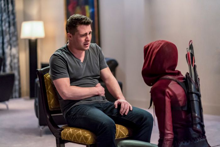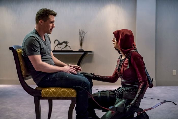 En las imágenes vemos a Thea (Willa Holland), vestida como su alter ego, rescatando al que fue su novio, quien parece estar gravemente herido.