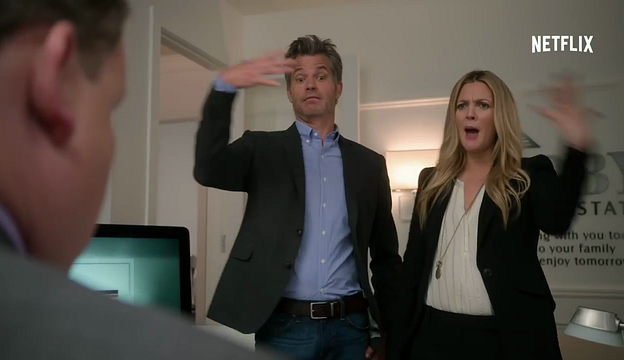 El problema llegó cuando la protagonista de Santa Clarita Diet decidió situar en primer lugar a Sandler, en segundo a Grant y en tercero y último lugar a Gyllenhaal. Este juego se hizo viral al poco tiempo, y ahora, en concreto este jueves durante la 'premiere' de la segunda temporada de la serie decidió que, para solucionar este "problema", lo mejor era llevar su propia pancarta:
