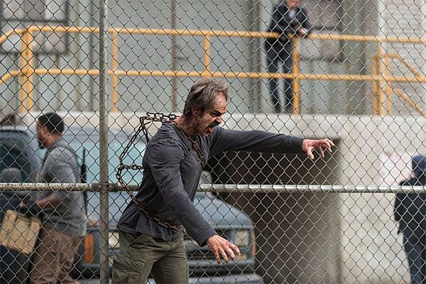 AMC ha publicado nuevas imágenes del próximo episodio, el último de la temporada, en las que Negan decide dar ejemplo a todos los habitantes del Santuario encadenando a Simon, ahora zombi, a una de las verjas del complejo.