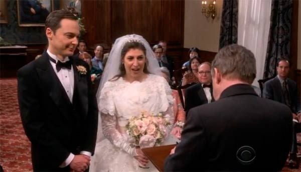 El mismísimo Mark Hamill fue el encargado de oficiar el enlace entre los personajes interpretados por Jim Parsons y Mayim Bialik. En realidad fue una casualidad. Howard había encontrado al perro del actor, que se había perdido, y este quería agradecérselo. Al ingeniero se le ocurrió invitarle a la boda de sus amigos. Cuando llega el gran momento, siendo fieles a sí mismos, Amy y Sheldon hacen esperar a sus invitados unos 40 minutos porque estaban trabajado en una nueva teoría física. Finalmente, la pareja se da el 'sí quiero' y se convierte en marido y mujer.
