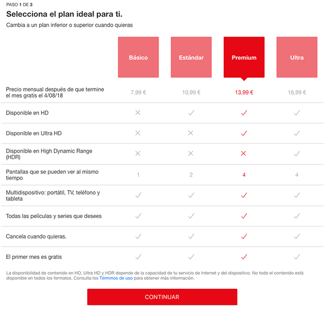 'Ultra' se situaría como una opción mayor a la actual 'Premium', pagando por ella, en un principio, 16,99€/mes -este precio podría variar en un futuro-. No obstante, el hecho de que tan solo cambie una característica está haciendo sonar las alarmas: se trata de dar un valor añadido al HDR, que amplía la gama de color ofreciendo un resultado más intenso y realista.
