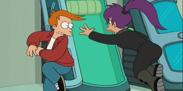 Mientras ella lucha por incrustarle un chip que le identifica como repartidor, el robot se divierte llevándole a beber y a un museo de cabezas flotantes. Todos juntos deciden empezar una nueva vida y van a visitar al Profesor Famsworth -recuerdas que es el sobrino de Fry y no su abuelo, ¿verdad?-, quien les da trabajo como repartidores intergalácticos. "¡Bienvenido al mundo dle futuro!".