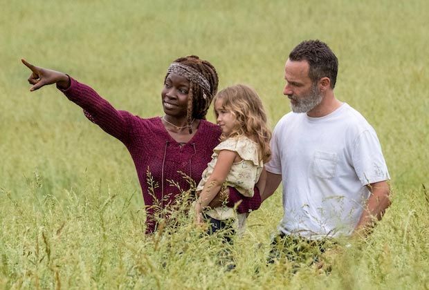 Aunque en su momento comenzó "de repente", la bonita historia de amor entre Michonne (Danai Gurira) y Rick se había consolidado en las últimas temporadas hasta formar una familia. La pérdida de Carl (Chandler Riggs) fue especialmente dura para ellos, pero, como vemos en la imagen, los dos estarán disfutando de Judith en el nuevo mundo que han comenzado a crear. Sin duda, la imagen no resultaría tan emotiva si no supiésemos que esta bella familia que vemos en la fotografía va a romperse muy, muy pronto.