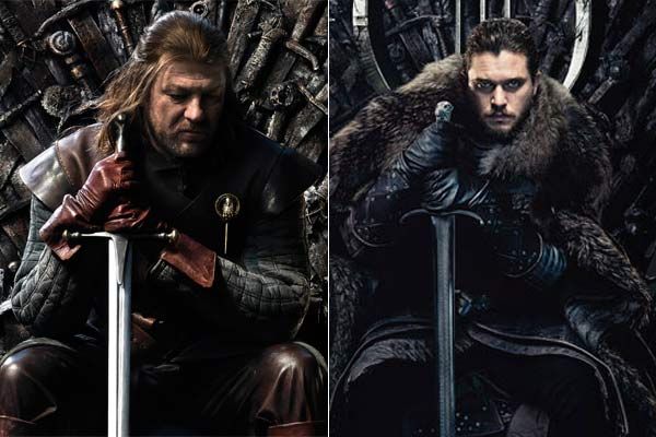 El medio CBR ha comparado la instantánea del personaje de Kit Harington con la famosa pose de Ned en la primera temporada. Los dos Stark están sentados en el trono, agarrando la espada con ambas manos. La diferencia es que Jon mira directamente a cámara con una mirada algo desafiante, mientras que su padre está cabizbajo, mirando al suelo.
