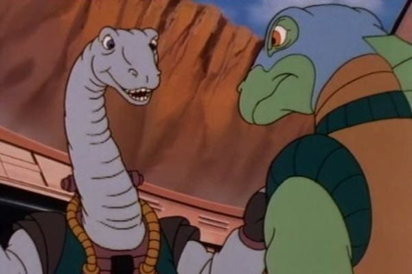 De finales de los 80 también era Dinosaucers, que duró 65 episodios en una sola temporada. Aquí no había caballeros de la Mesa Redonda, sino dinosaurios antropomórficos inteligentes que llegaban a la Tierra y que reclutaban a cuatro pequeños y valientes humanos (Ryan, Sara, Paul y David), los Exploradores Secretos, para combatir a los malvado Tyrannos, comandados por el brutal Genghis Rex. Bases secretas, anillos de poder, naves espaciales con forma de dinosaurio… "Solíamos ser cuatro adolescentes normales y corrientes… hasta que un día… conocimos a unos nuevos amigos de fuera de la ciudad. Se llamaban… Dinosaucers". Todavía se me ponen los pelos de punta.