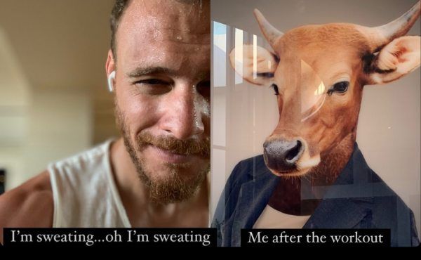 Se trata de una serie de imágenes del actor de Love is in the air levantando peso. En las tres primeras, mientras entrena, se puede leer "Aquí vamos. ¡Pesa! Sé guay. ¡Sé guay! Aquí vamos. No es nada... Sigue pesando mucho". En las dos siguientes, ya descansando: "Un trozo de pastel... Actúa interesante... Oh sí. Estoy sudando". En la última, aparece un ciervo con traje y mucho estilo y el texto: "Yo después del ejercicio".