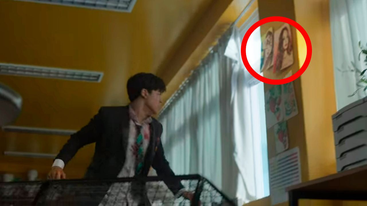 El plan de Lee Su es escapar por la ventana, pero, como en una buena ficción de terror, ocurre un suceso inesperado para el protagonista. Por accidente, tira un lápiz y el caos se inicia, pero… pegado en la pared aparecen dos ilustraciones hechas a mano de Tzuyu y YooA, estrellas k-pop que pertenecen a TWICE y OH MY GIRL, respectivamente.