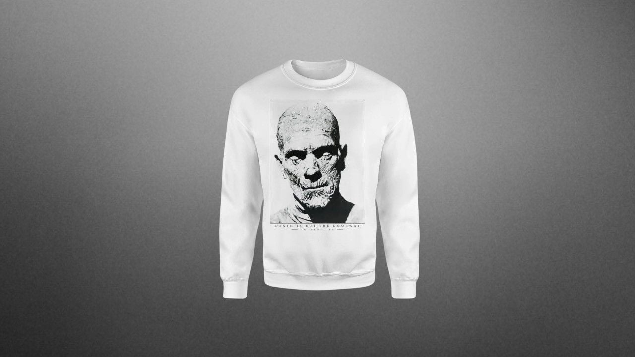 Otro de los grandes monstruos del cine de terror es 'La Momia', por lo que no es de extrañar que este variopinto personaje haya contado con numerosas adaptaciones al cine. En esta ocasión, la sudadera mantiene una tonalidad blanca con un estampado de la mismísima momia, y su precio es de tan solo 20,99 euros.