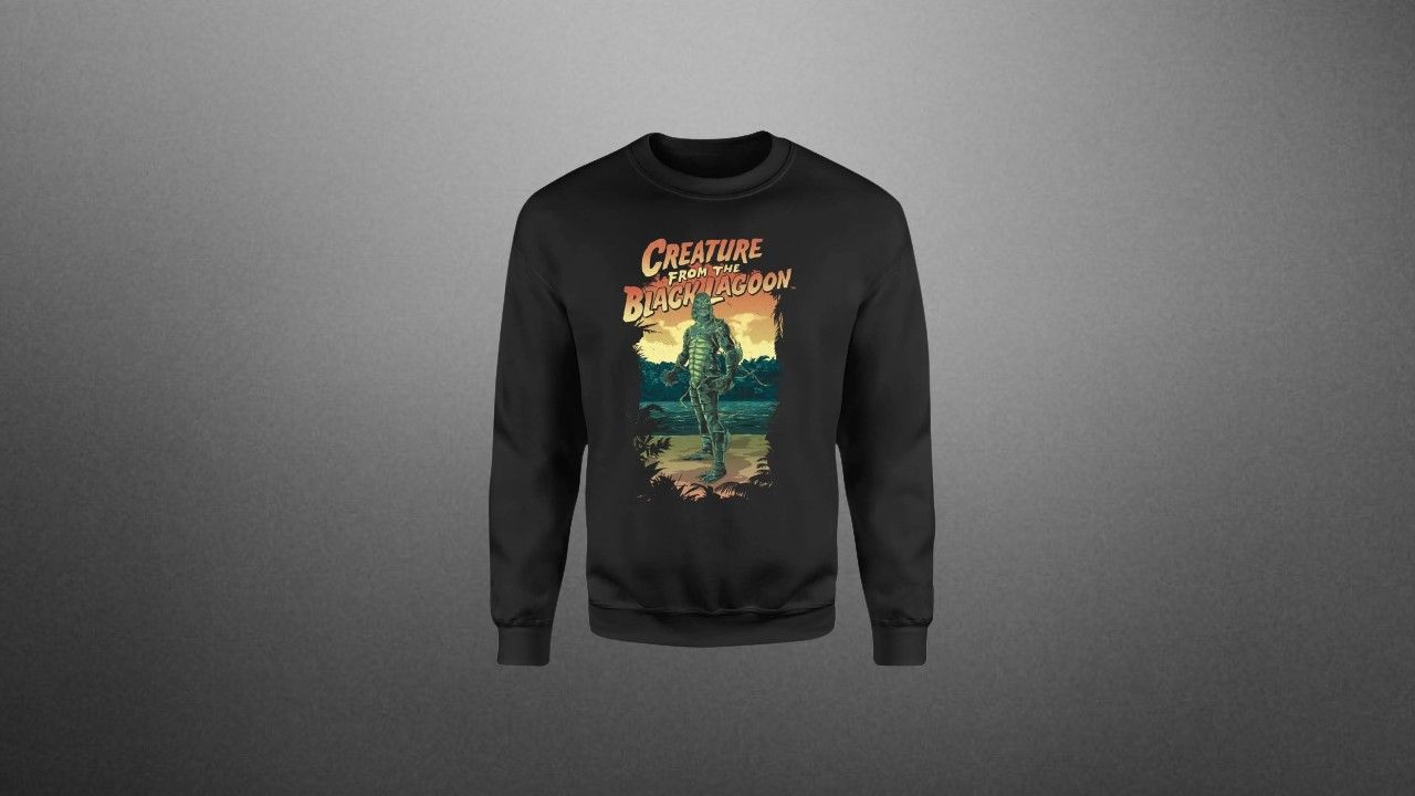 'La mujer y el monstruo' -'Creature from the Black Lagoon'- es otro de los personajes clásicos de Universal que protagonizaba su propia cinta de terror, llegando a causar un buen impacto en la época. El diseño de la sudadera centra al propio personaje y, en un segundo plano, un lago con un colorido espectacular. Su precio con el descuento se queda por solo 20,99 euros.