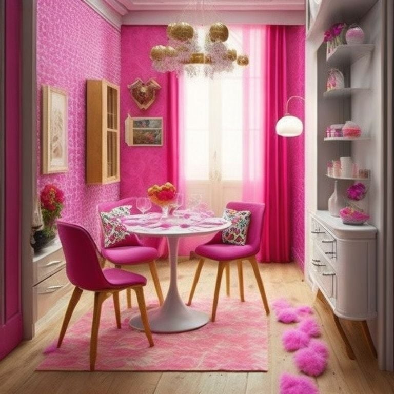 Una mesa donde poder charlar con las otras Barbies y Ken del barrio y que no falte el color rosa.
