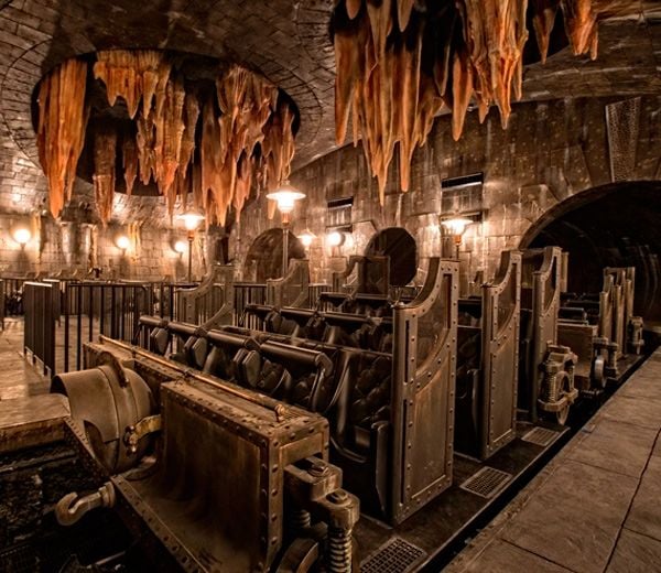 4. Y también el Banco de Gringotts. Para acceder a la atracción del Banco de Gringotts -quizá el lugar que pedía más a gritos una montaña rusa- tienes que pasar por él. Sin duda, una oportunidad única para disfrutar de su enorme salón, decorado con decenas de 'animatronics' de goblins; todos obsesionados contando sus monedas y con miradas de lo más suspicaces. ¡Hasta te miran a los ojos si pulsas los timbres de encima de sus mesas! El viaje, sin contarte demasiado, incluye algún que otro cameo.