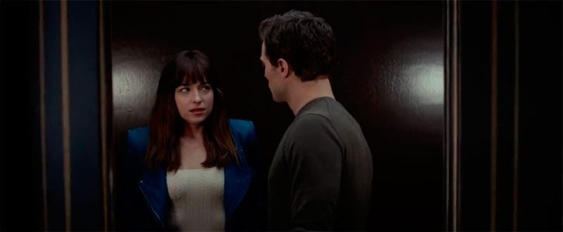 El ascensor. "A la mierda el papeleo". Estas son las palabras que pronuncia Christian en Cincuenta sombras de Grey antes de abalanzarse sobre Anastasia en el ascensor. Ella todavía no ha firmado el famoso contrato, pero él es incapaz de resistirse. Atención a que él le levanta las manos por encima de su cabeza cuando ella intenta tocarle.