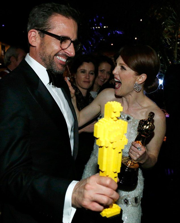 El protagonista de Foxcatcher bromea con la vencedora Julianne Moore (Siempre Alice).