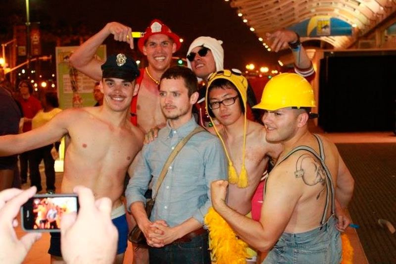 ¿Un grupo de chicos sin camiseta te asaltan en la Comic-Con? Elijah se hace una foto con ellos sin problemas