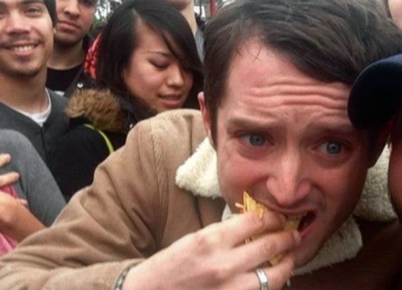Y aquí tenemos el caso contrario. ¡Elijah Wood siempre tiene una sonrisa!