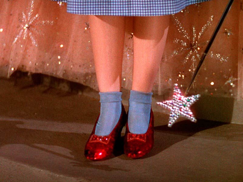 ¡No podían faltar los zapatos rojos de Dorothy! En el año 2000 llegó a venderse el par por 666.000 dólares.