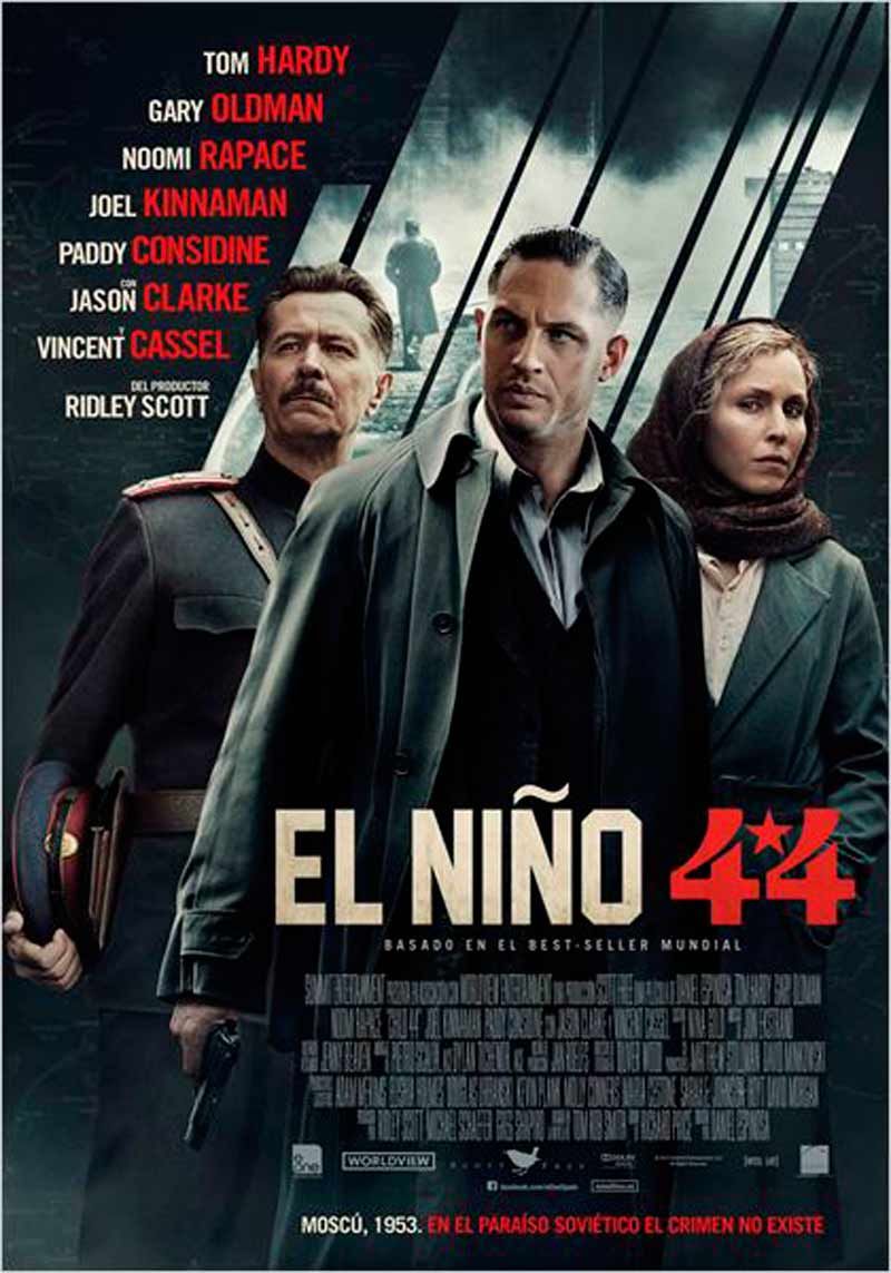 Tom Hardy, Noomi Rapace y Gary Oldman protagonizan la adaptación de esta novela de Tom Rob Smith. El niño 44 cuenta la historia de Leo Demidov, un agente que decide investigar una serie de asesinatos de niños. Por el contrario, el Estado decide ocultar lo ocurrido y exiliar al policía. A pesar de esto, Leo continúa la investigación con la ayuda de su mujer.