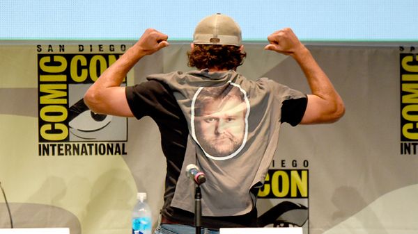 Joss Whedon junto a Clark Gregg y Chloe Bennet