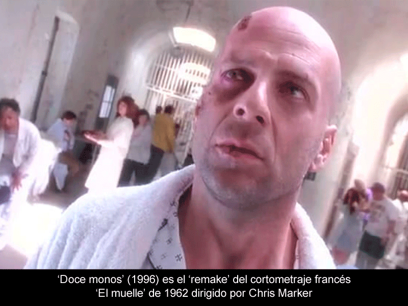 La cinta, de 1995, dirigida por Terry Gilliam y protagonizada por Bruce Willis y Brad Pitt, es un 'remake' de la película francesa La Jetée, de 1962, cuya duración era menos de 30 minutos. Doce monos