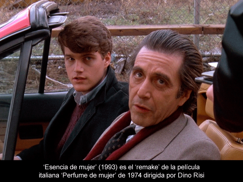 La película, de 1993, protagonizada por Al Pacino, es un 'remake' de la cinta italiana, de 1974, Perfume de mujer. Esencia de mujer