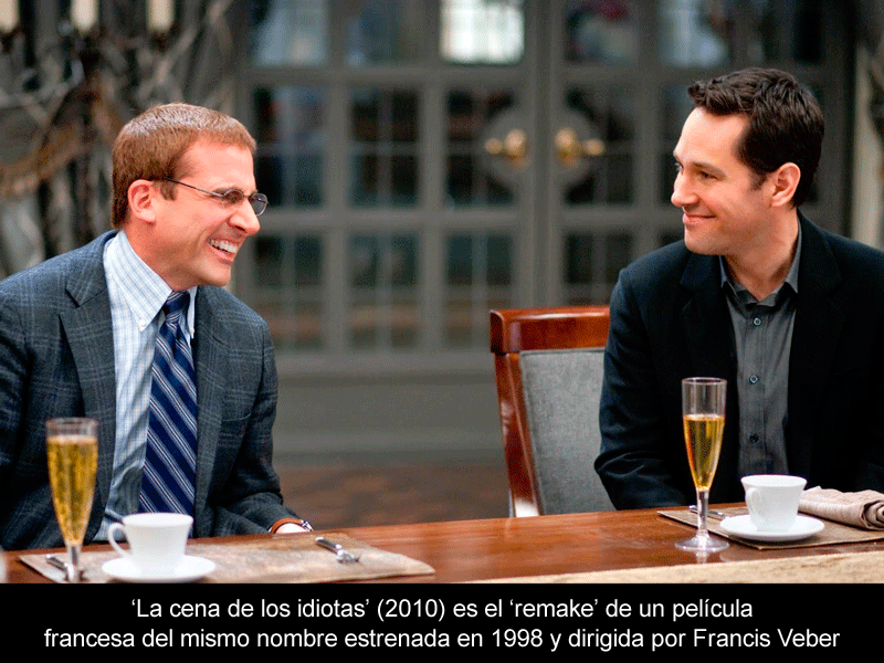 La comedia de 2010, protagonizada por Steve Carell y Paul Rudd, es un 'remake' de la de francesa del mismo nombre (en España), de 1998. La cena de los idiotas