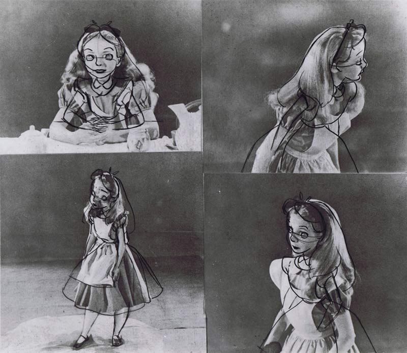 Animadores con la modelo de Alicia, Kathryn Beaumont