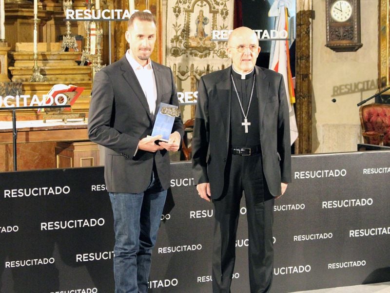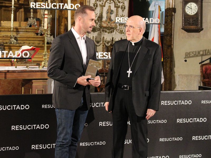 El actor recibiendo el Premio Madrimaná de la mano del monseñor Carlos Osoro.