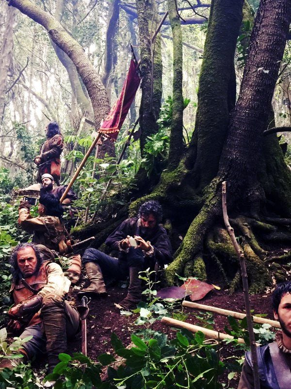 Aún no hay una fecha de estreno para el filme, pero el productor Enrique Lavigne ha revelado vía Twitter varias fotos del rodaje, en las que podemos ver a actores como José Coronado, Óscar Jaenada o Raúl Arévalo caracterizados como fieros exploradores españoles del siglo XVI. Todas ellas indican que está siendo un rodaje muy inmersivo, en constante contacto con la naturaleza. ¡Échalas un vistazo!