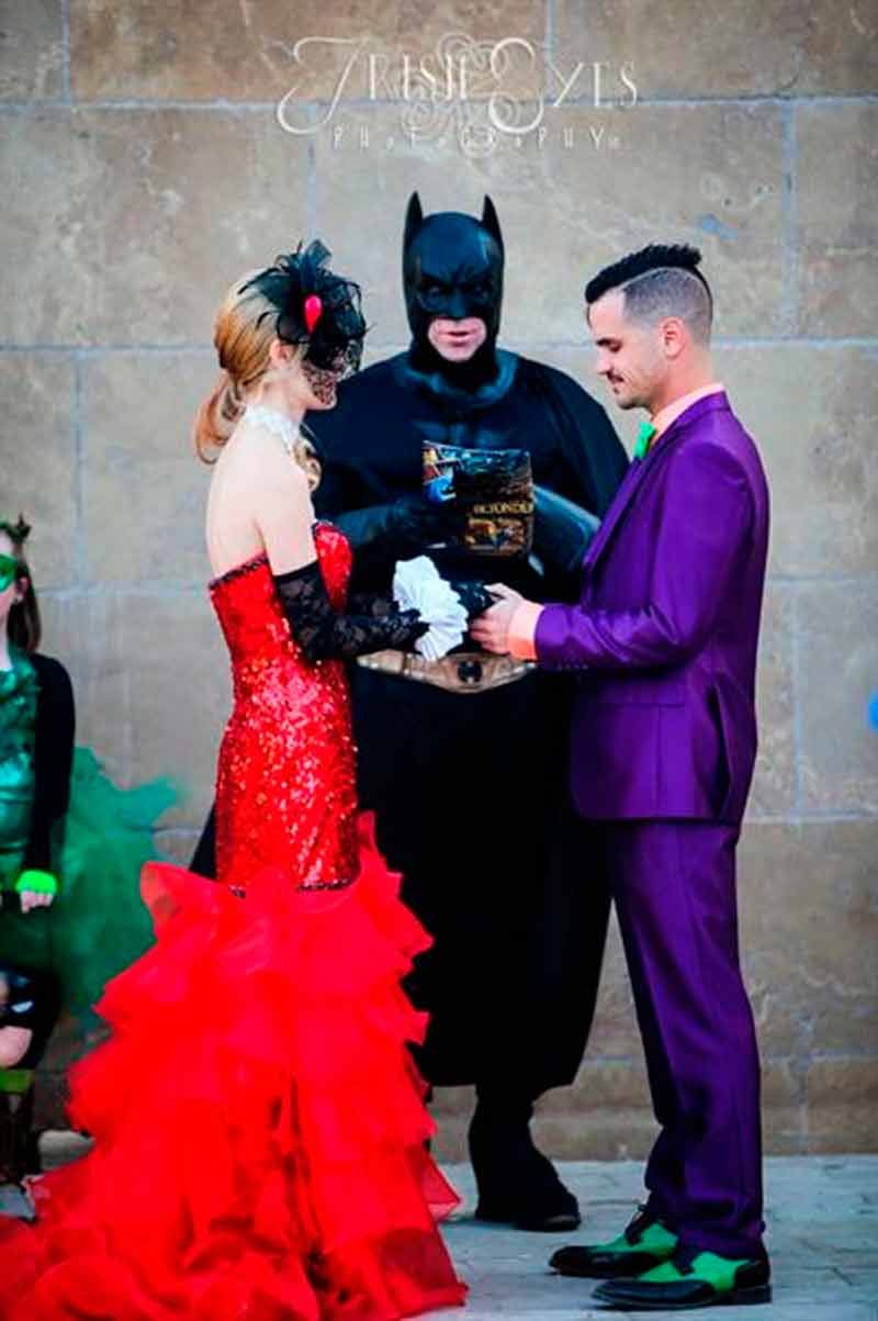 Ali Butrym y Ryan Jeziorski se vistieron de Harley Quinn y el Joker para casarse en noviembre de 2014. Todos los invitados acudieron disfrazados de superhéroes y no faltó ningún detalle "comiquero".