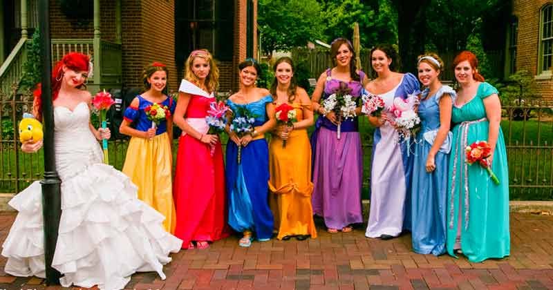 No sabemos cómo iría el novio, pero las damas de honor y la novia recurrieron a la magia de Disney para escoger sus vestidos.