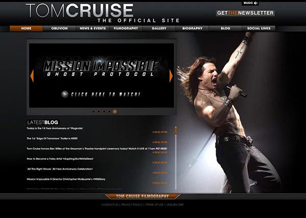 Esta web se abre con la reproducción automática de Love on a Real Train, tema de la banda sonora de Risky Business. Así, a ritmo de rock, el usuario ocasional puede navegar por más de setenta páginas con información sobre cada una de sus películas... y, curiosamente, sin la más mínima mención a la afiliación del intérprete a la Iglesia de la Cienciología.