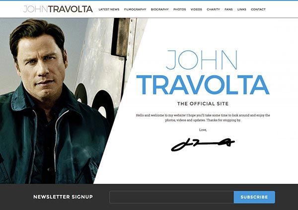 Al contrario que en el caso de Cruise, la web de John Travolta proclama a los cuatro vientos sus ideas religiosas, promocionando la Iglesia de la Cienciología sin sonrojo alguno. De entre el resto de sus contenidos, más bien escuetos, destaca por méritos propios una imagen del actor tocando el violín cuando era joven. Todo un tesoro de Internet.