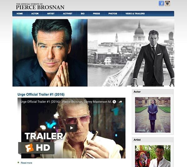 La página de este actor no tiene un aspecto tan desangelado como el resto de elementos de esta lista, pero sí se echa en falta una mayor claridad en la presentación de sus contenidos. Hay un gran número de entradas dedicadas a la lucha de Brosnan por el medio ambiente, así como también multitud de fotos -entre las que se encuentran varias registrando sus vacaciones-, noticias, y una peculiar biografía escrita entre el actor y un autor anónimo que concluye con la inquietante frase "Esta web significa un nuevo comienzo".