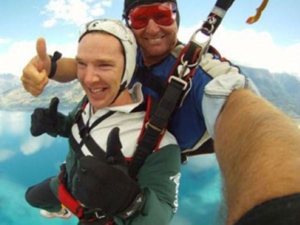 Benedict no tiene miedo y hace paracaidismo tan feliz