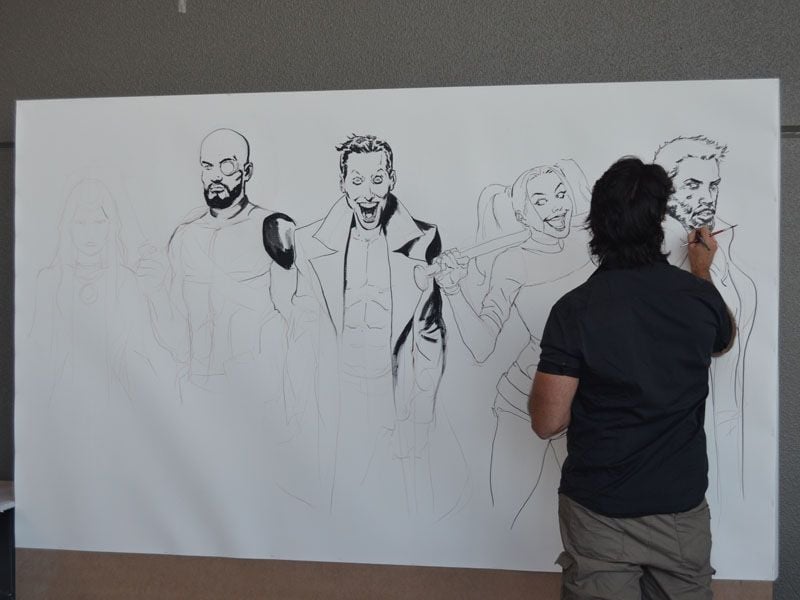 El ilustrador español que ha trabajado para DC en cómics de Superman, Linterna Verde y Escuadrón Suicida realizó un mural en directo.