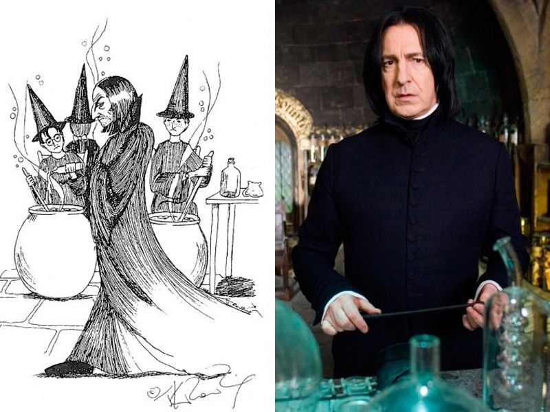 Viendo este boceto, no sería descabellado pensar que J.K. Rowling desarrolló el personaje del profesor de Pociones con un actor ya en mente: en efecto, el tristemente fallecido Alan Rickman.