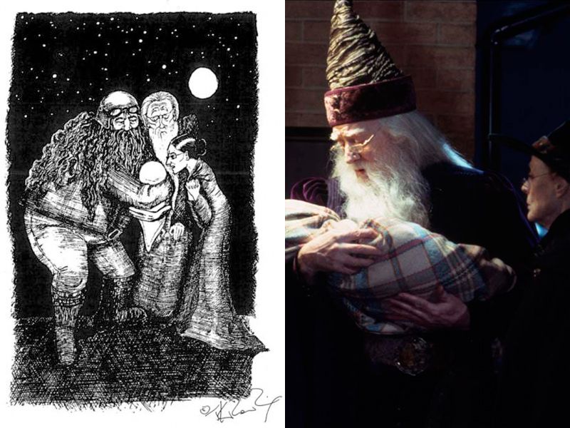 Como puedes observar, la familia adoptiva de Harry, y el mismo Harry, tuvieron un aspecto muy similar en los bocetos al que finalmente veríamos en pantalla. No deja de ser sorprendente, por otro lado, la decoración del nº 4 de Privet Drive en la película, por ser idéntica a la imaginada por J.K. Rowling -es decir, por mantener la gran cantidad de fotos centradas en Dudley Dursley.
