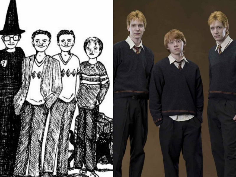 Ron, Fred y George Weasley son tres de los personajes más queridos de la saga. Y, a juzgar por este dibujo, también los tres cuyo aspecto más ha respetado el cine. Rupert Grint, y James y Oliver Phelps, sin duda, nacieron para interpretarlos.