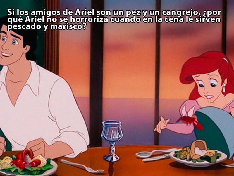 Si los amigos de Ariel son un pez y un cangrejo, ¿por qué Ariel no se horroriza cuando en la cena le sirven pescado y marisco?