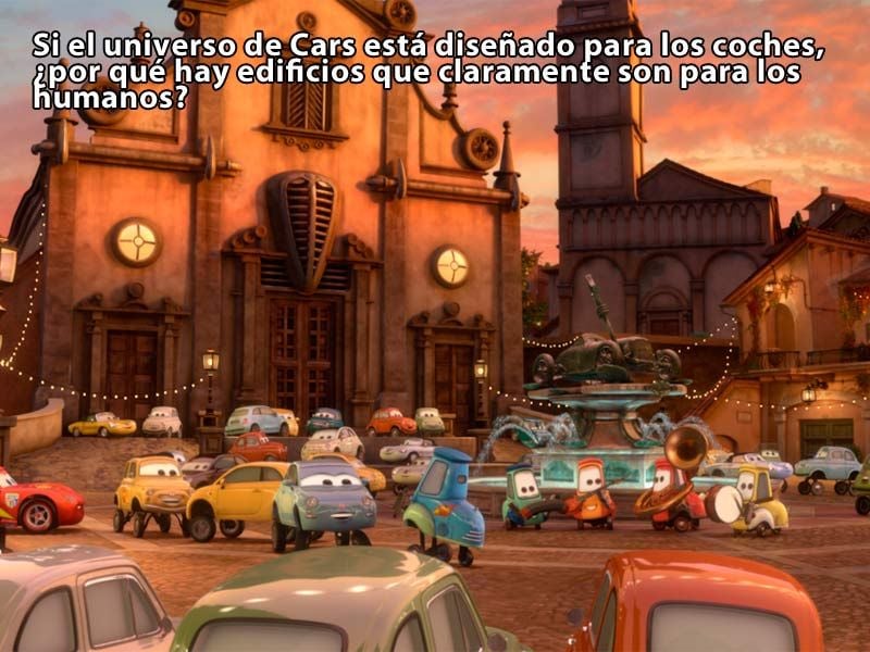 Si el universo de Cars está diseñado para los coches, ¿por qué hay edificios que claramente son para los humanos?