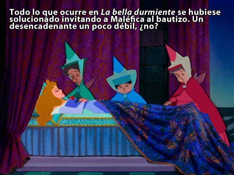 Todo lo que ocurre en La bella durmiente se hubiese solucionado invitando a Maléfica al bautizo. Un desencadenante un poco débil, ¿no?