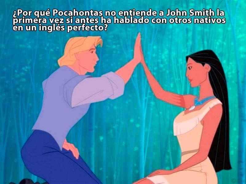 ¿Por qué Pocahontas no entiende a John Smith la primera vez si antes ha hablado con otros nativos en un inglés perfecto?
