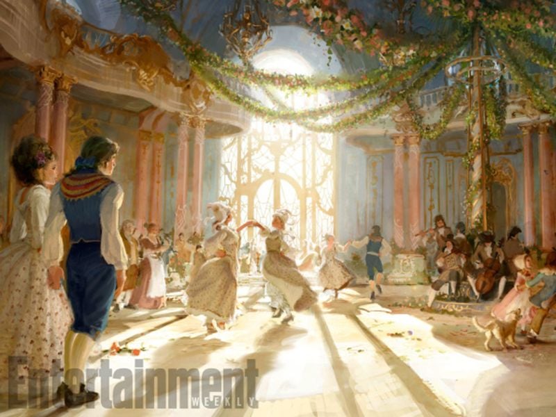 Para recrear la sala en la que el Príncipe (Dan Stevens) da bailes antes de ser convertido en Bestia, buscaron objetos muy lujosos y glamurosos. En el salón se pueden encontrar candelabros modelados al estilo de los de la Galería de los espejos de Versalles y un mármol en el suelo inspirado en el techo de una abadía en Braunau, Alemania.
