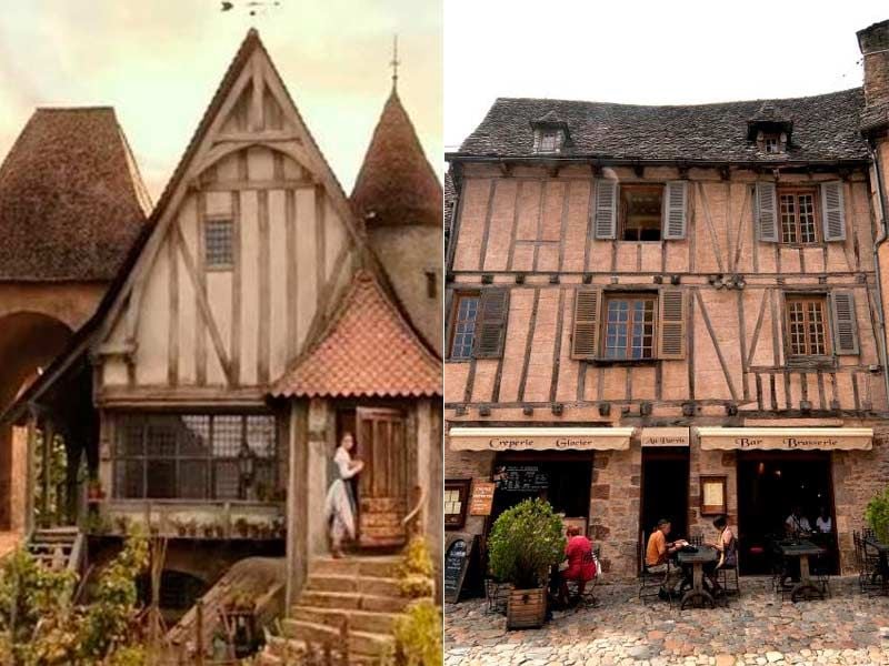 Para hacer el pueblo en la versión de acción real, el equipo visitó Conques (Francia).